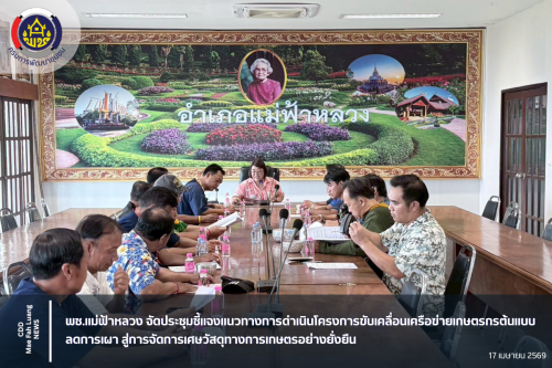 พช.แม่ฟ้าหลวง จัดประชุมชี้แจงแนวทางการดำเนินโครงการขับเคลื่อนเครือข่ายเกษตรกรต้นแบบ ลดการเผา สู่การจัดการเศษวัสดุทางการเกษตรอย่างยั่งยืน
