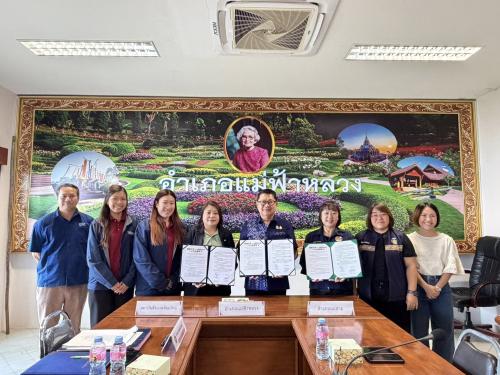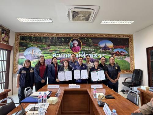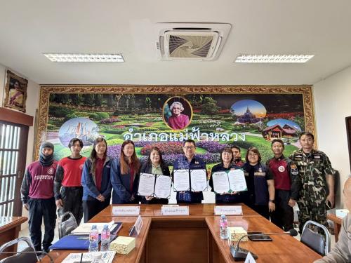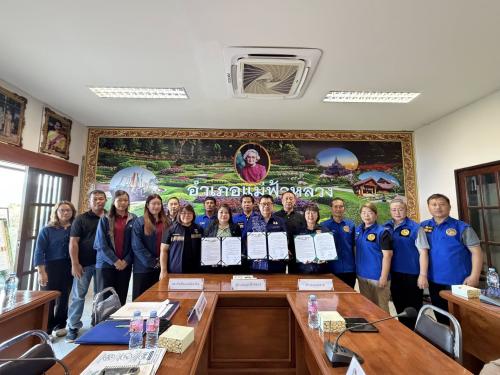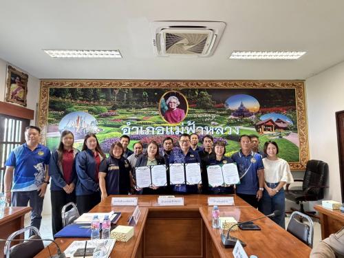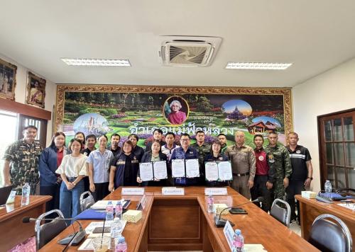 นางสาวทักษนันท์ แขมหอม พัฒนาการอำเภอแม่ฟ้าหลวง พร้อมด้วยเจ้าหน้าที่พัฒนาชุมชนอำเภอแม่ฟ้าหลวง ดำเนินโครงการขับเคลื่อนเครือข่ายเกษตรกรต้นแบบเพื่อลดการเผาและจัดการเศษวัสดุทางการเกษตรอย่างยั่งยืน ในพื้นที่ต้นแบบอำเภอแม่สายและอำเภอแม่ฟ้าหลวง จังหวัดเชียงราย พร้อมร่วมพิธีลงนามบันทึกข้อตกลงความร่วมมือ (MOU) “งดการเผา เพื่ออากาศสะอาด”